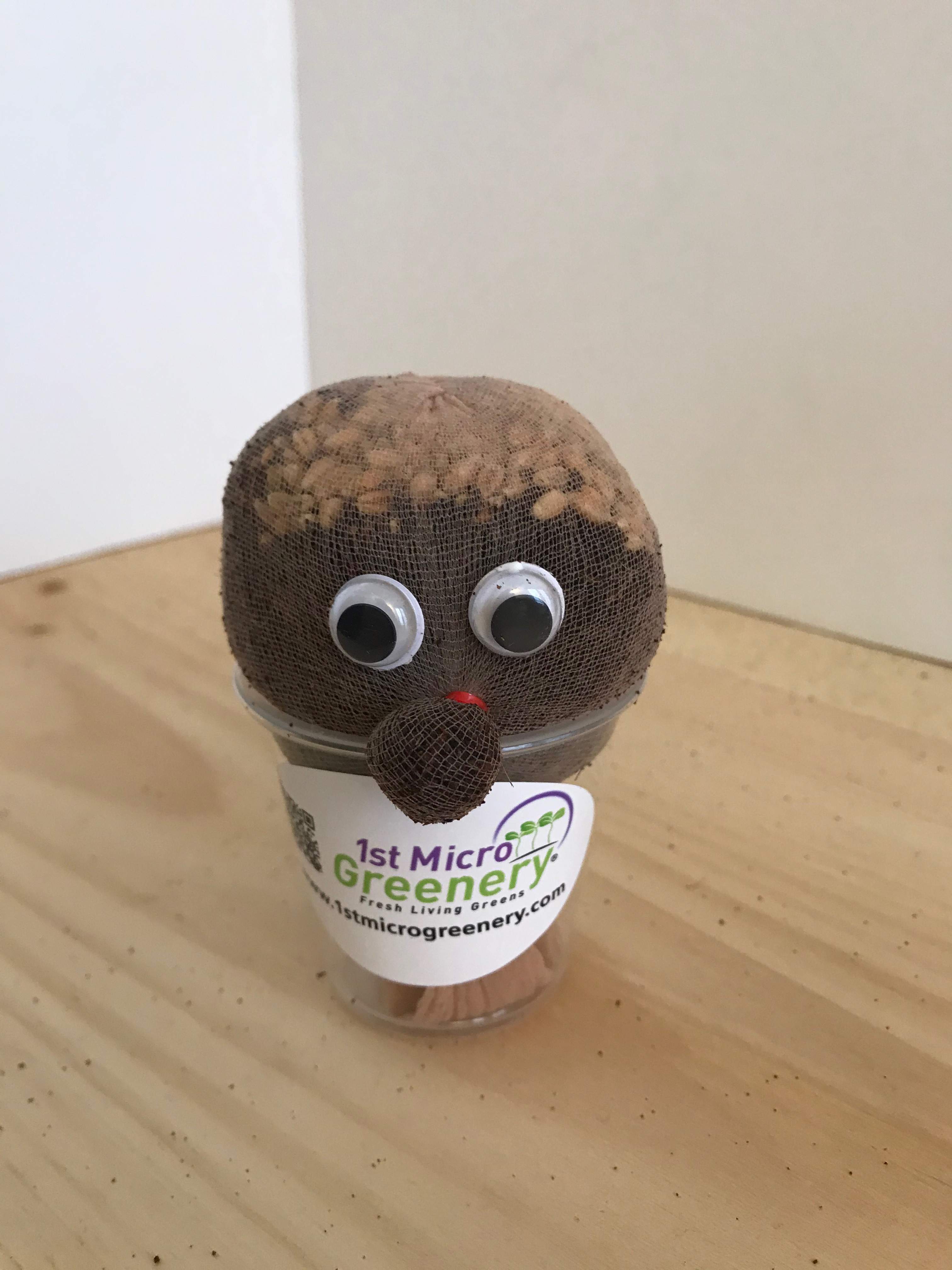 • Separate eyes, rubber bands, sock, wheatgrass and set aside.