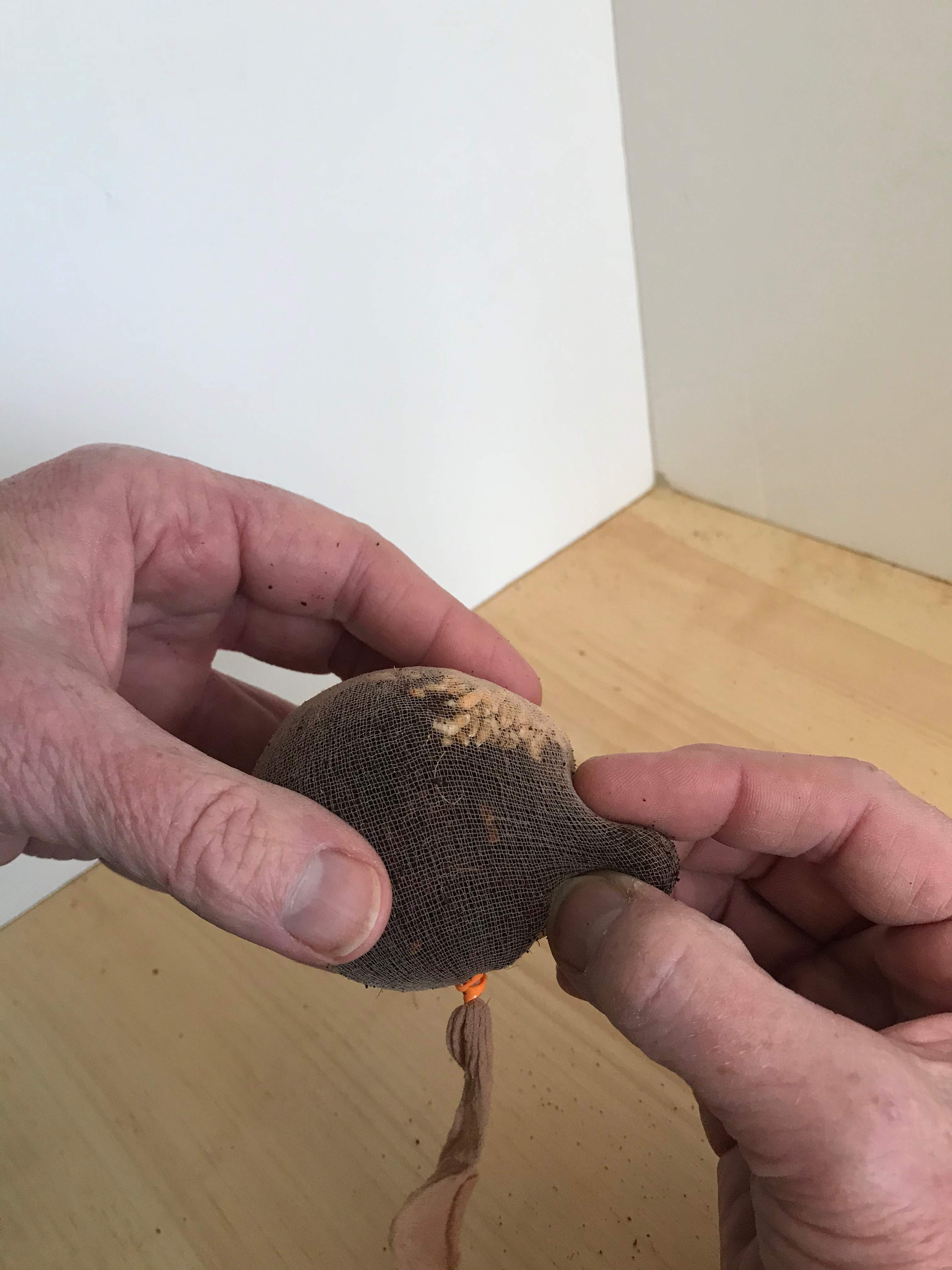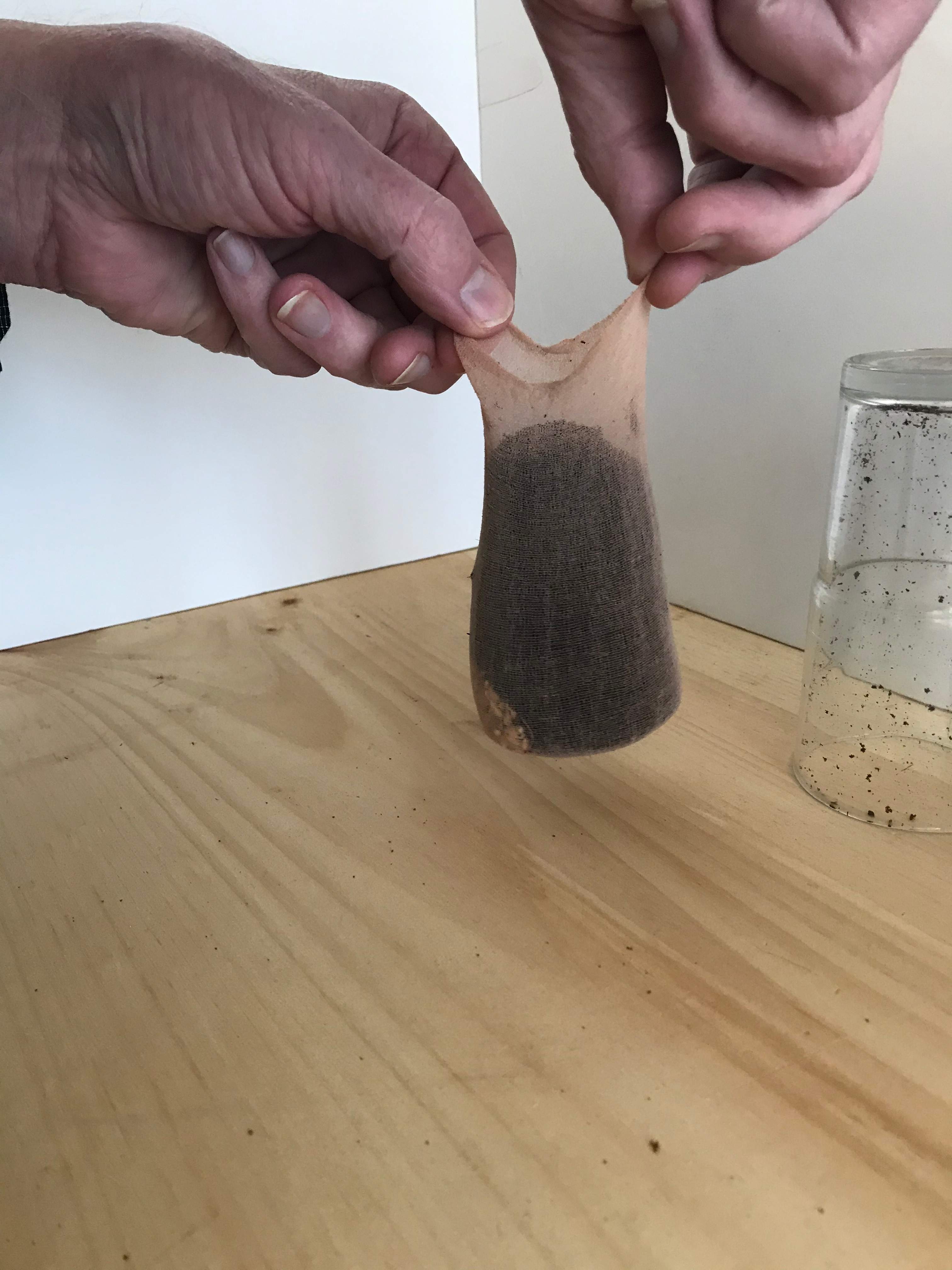 • Turn glass upside down. Gently slide glass off sock. Shake sock to form a ball with a tail.